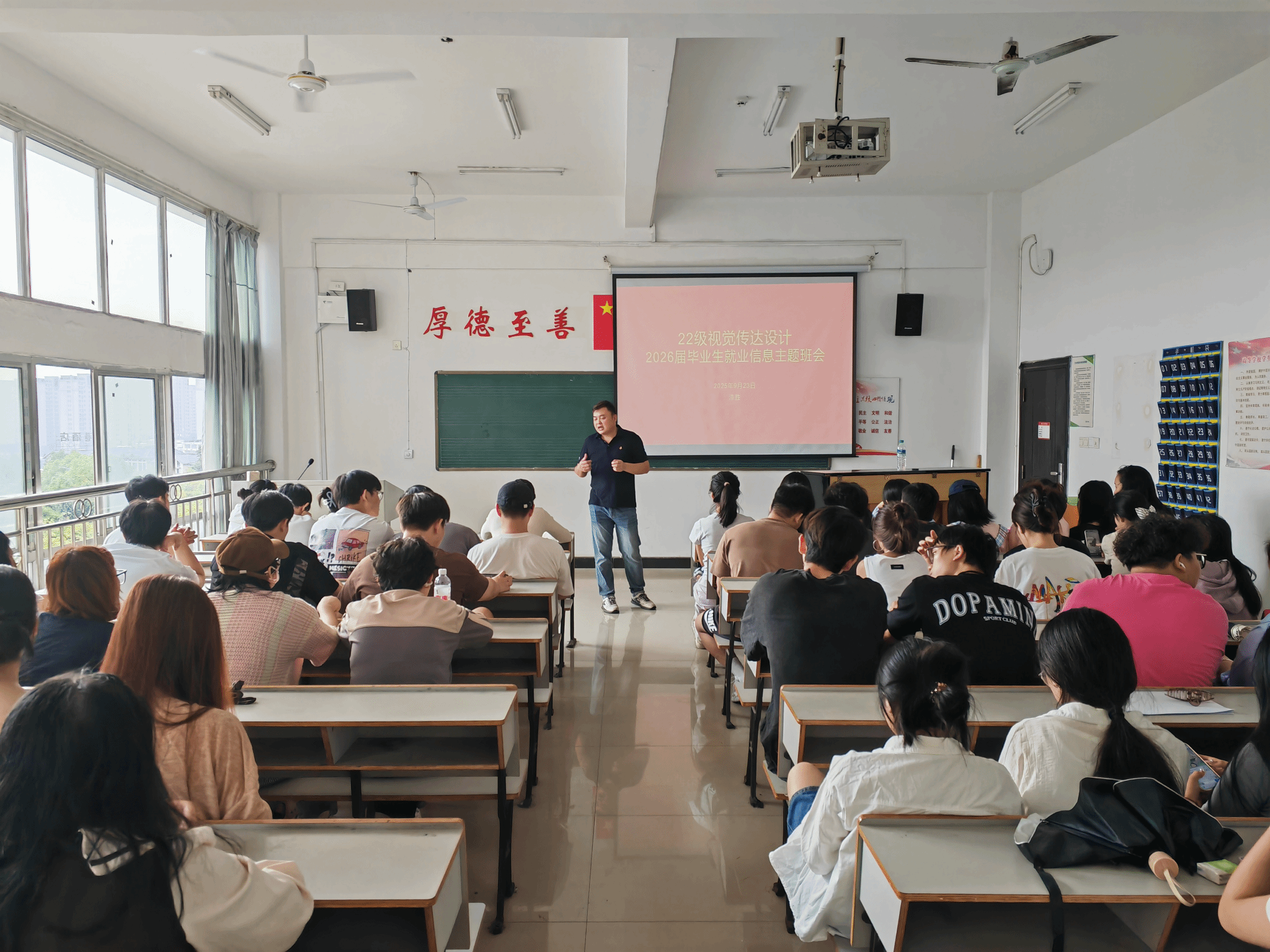 为切实做好2026届毕业生就业服务工作,帮助同学们认清就业形势、明确职业方向、提升求职竞争力,9月23日下午,艺术学院视觉传达设计22级辅导员漆胜老师在学院会议室组织召开了26届毕业生就业指导专题会。会议结合当前就业市场趋势与视传专业特点,为同学们提供了全方位、针对性的就业指导与建议。