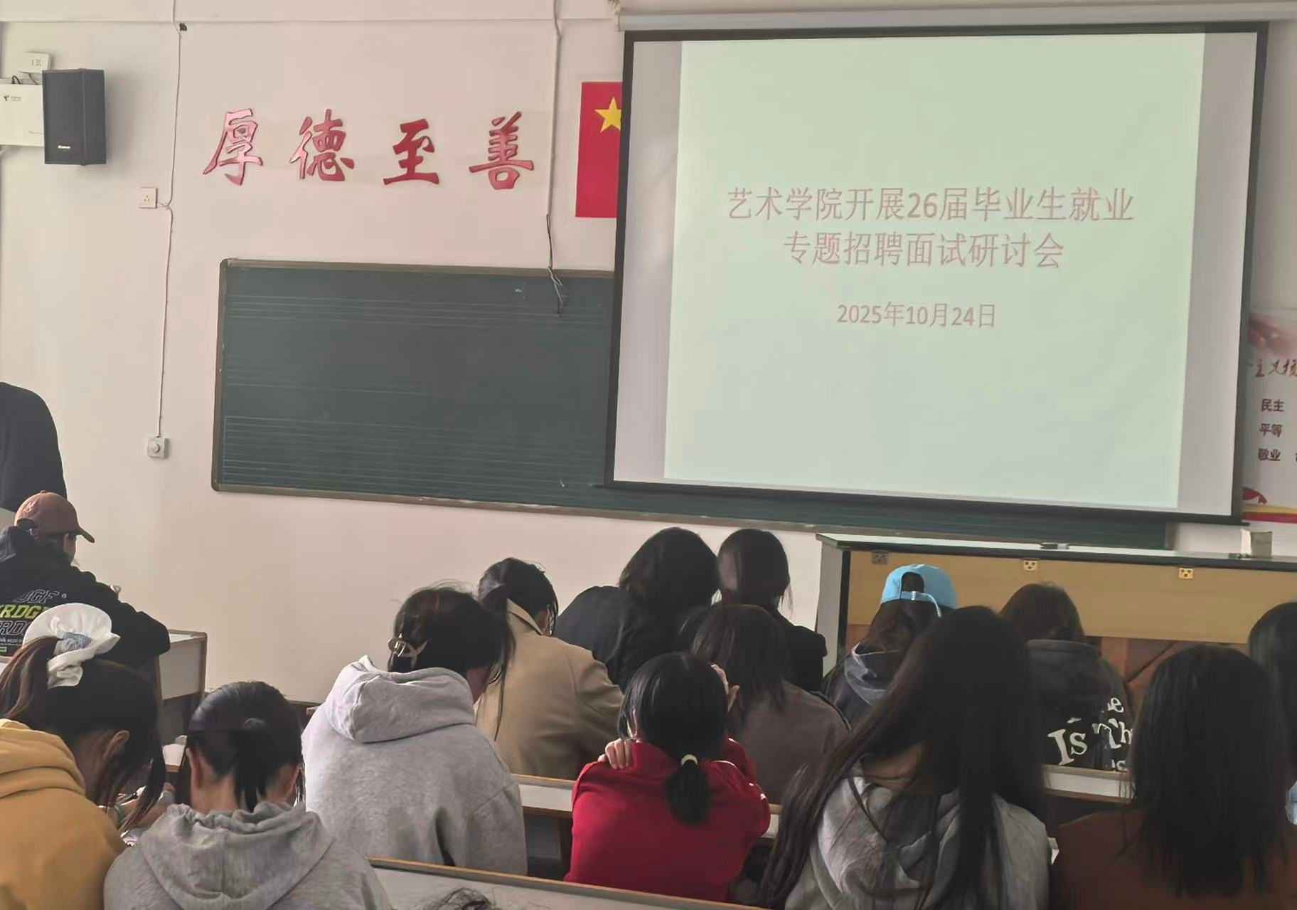 为了提升毕业生求职面试能力,为后续就业做好准备。10月24日,艺术学院在宜萱楼302教室开展2026届毕业生就业专题招聘面试研讨会,辅导员漆胜担任主讲人,2026届毕业生参会。