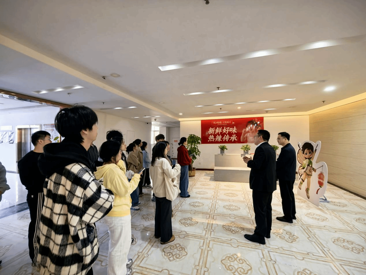 为深化产教融合,搭建校企合作桥梁,助力视觉传达设计专业毕业生精准对接就业市场,2025年10月25日,萍乡学院艺术学院视觉传达设计专业姚松奇、谢琼梅、王晓玢、周荣一四位老师带领该专业应届毕业生,前往本地知名企业——萍乡市花蝴蝶食品有限公司进行实地考察与交流。
